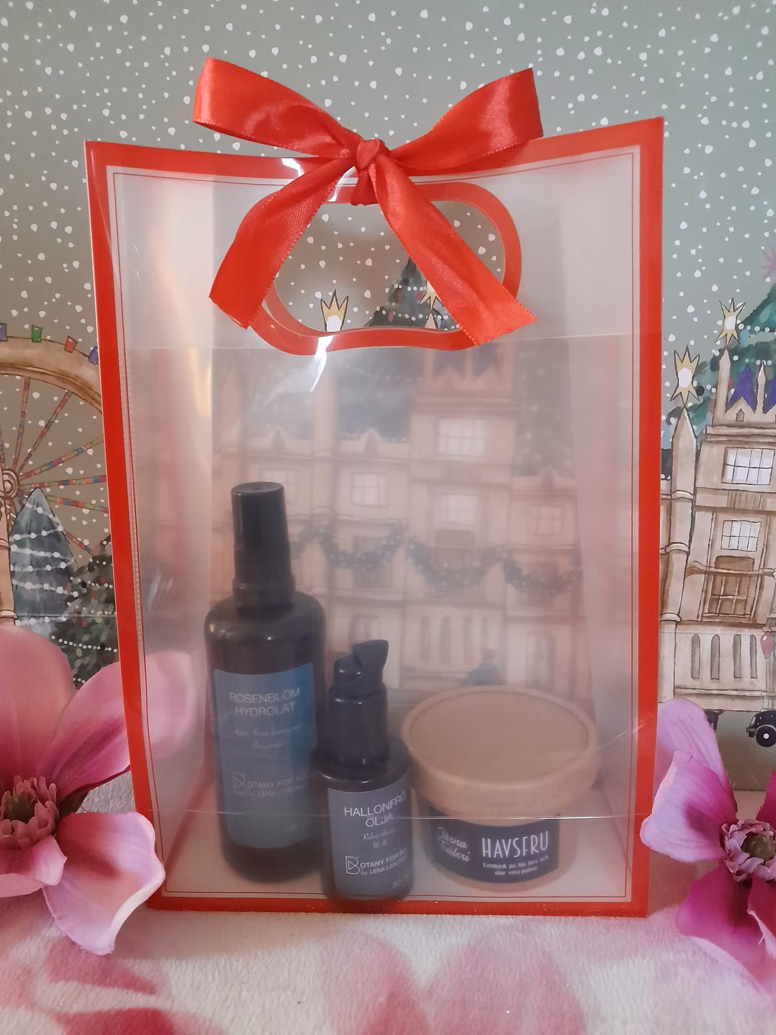 Hydrolat+hallonfröolja+ansiktsmask i presentpåse